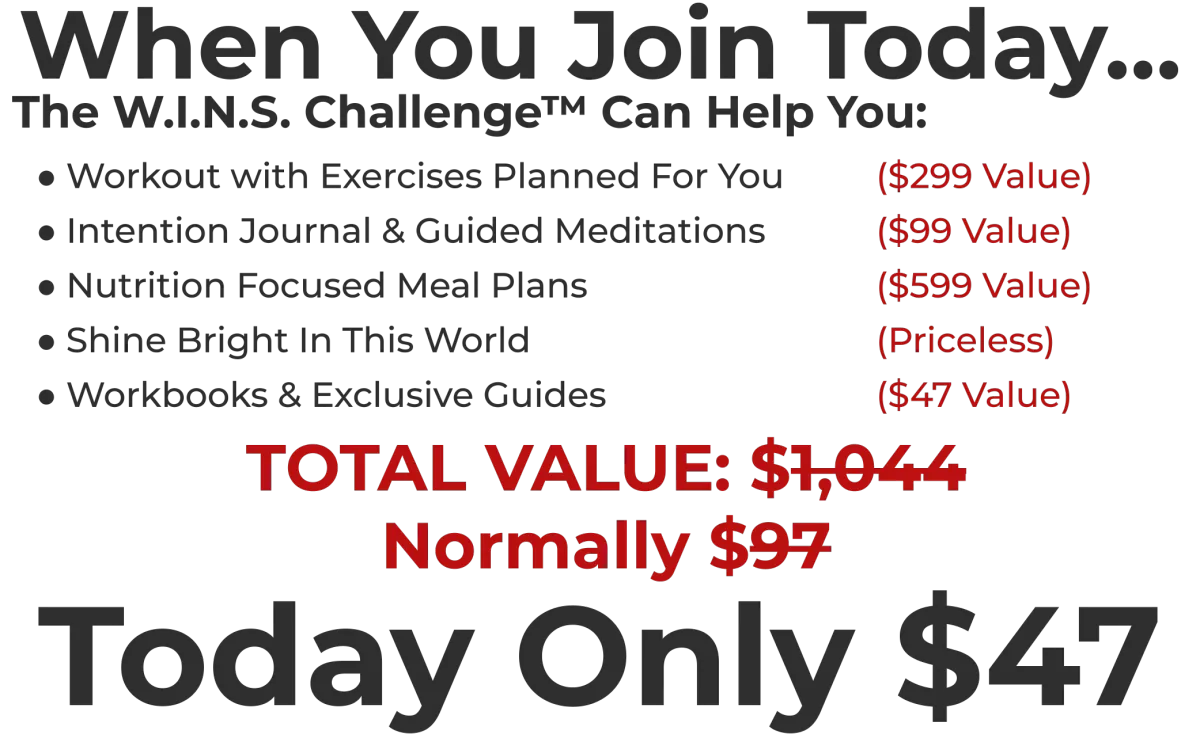 The reality is if you don’t believe in yourself by joining the W.I.N.S. Challenge™ you’ll stay in the same exact situation you’re in now and you won’t be able to get the health you deserve